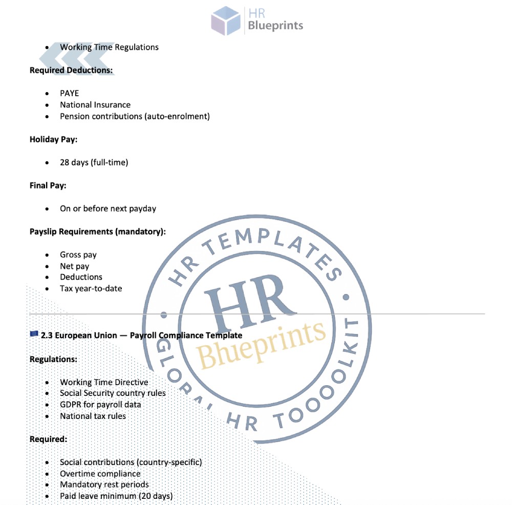 9-Page Editable Global Payroll Compliance System | USA β’ EU β’ UK β’ PH β’ CA β’ AU β’ UAE