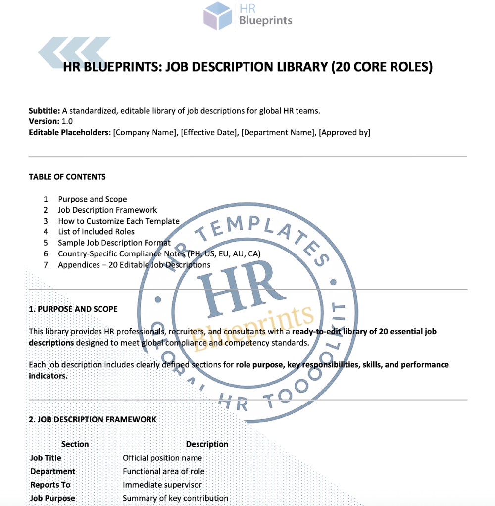 Professional layout with HR Blueprints branding